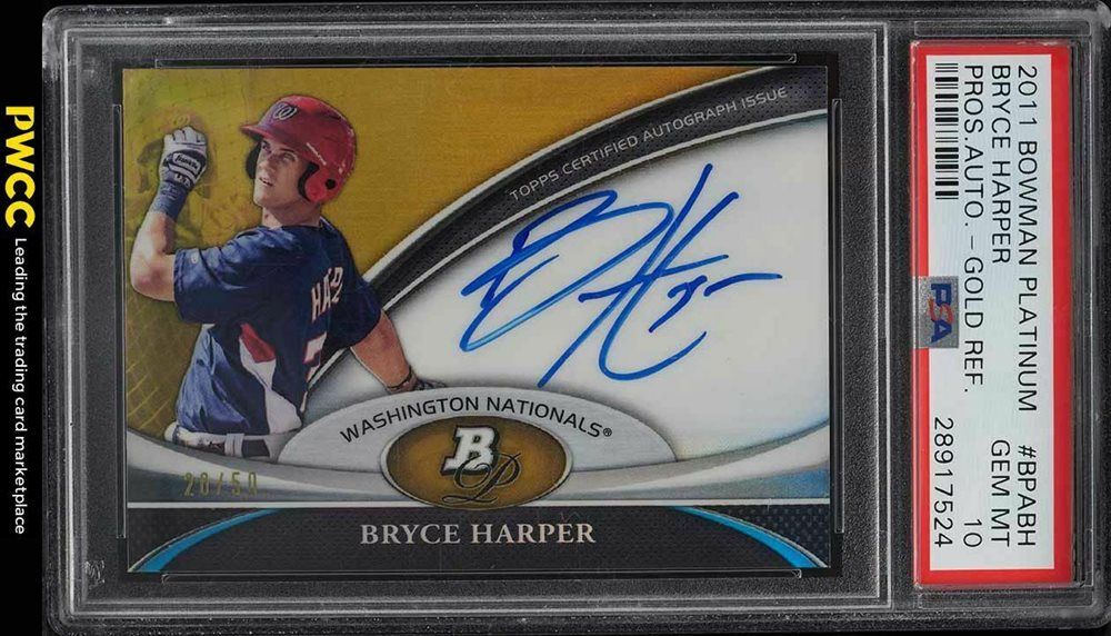 Prices for PSA gem mints have had quite a thrill ride. In June 2019, a PSA gem mint 2011 Bowman Platinum Prospects Bryce Harper #BCP1 Gold Refractor was a steal at just $620 on eBay. Fast forward to July 2020, one was auctioned for $939 on eBay, but another was selling for $709 by September 2020.