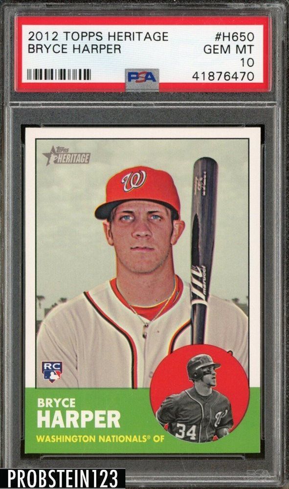In December 2017, a PSA gem mint 2012 Topps Heritage Bryce Harper Rookie Card #H650 sold on eBay for $1,276. By June 2019, another PSA 10 skyrocketed to $2,900 on eBay.